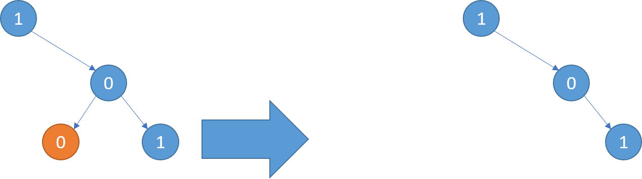 On the other hand, if either of the children are not None, that means they weren’t pruned and thus the tree rooted at node must contain a 1.