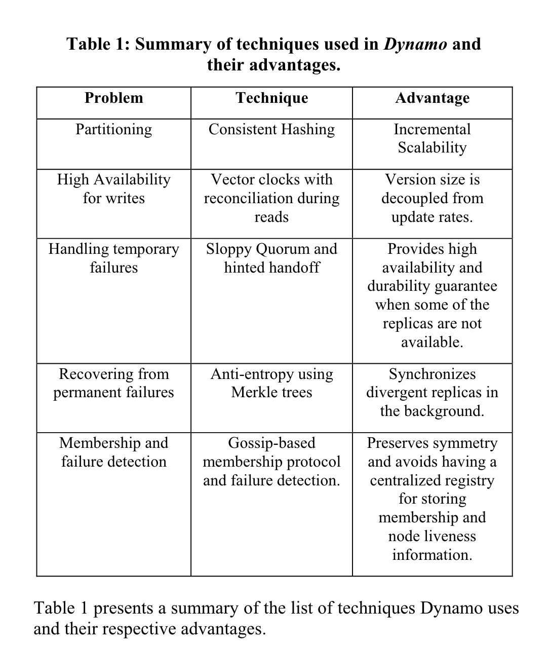 “The main advantage of Dynamo is that its client applications can tune the values of N, R and W to achieve their desired levels of performance, availability and durability.” (DeCandia et al., p. 204)