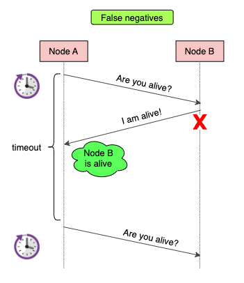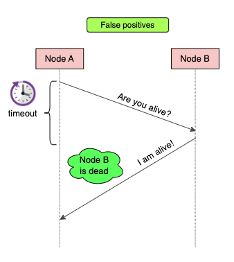 - if we have a short time out, we detect failures faster, but some nodes might be declared dead when instead they are just a bit slow, leading to false positives.
