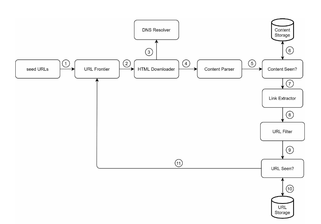 - we need a component that actually parses the content in the webpages and extract new urls to visit.